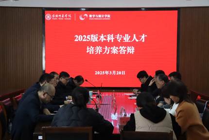 会上,院长郭嵩首先简要介绍了培养方案修订的背景和意义,并介绍了答辩评审建议指标点。副院长张春从专业调研与专业标准研讨、培养目标与预期目标、毕业要求、课程体系、实践教学和学时与总学分等方面汇报了2025版数学与应用数学(师范)和统计学专业培养方案的修订情况。