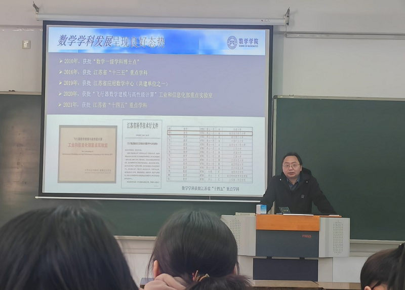 讲座伊始,周良强教授从新葡萄8883官网AMG引入,向同学们介绍了南京航空航天大学数学学院的历史沿革与新葡萄8883官网AMG,激发了学生们对于考研院校的向往与思考。他带领学生由浅入深,从学院基本概况到特色发展战略,使同学们更加全面具体的了解到学校的基本情况。