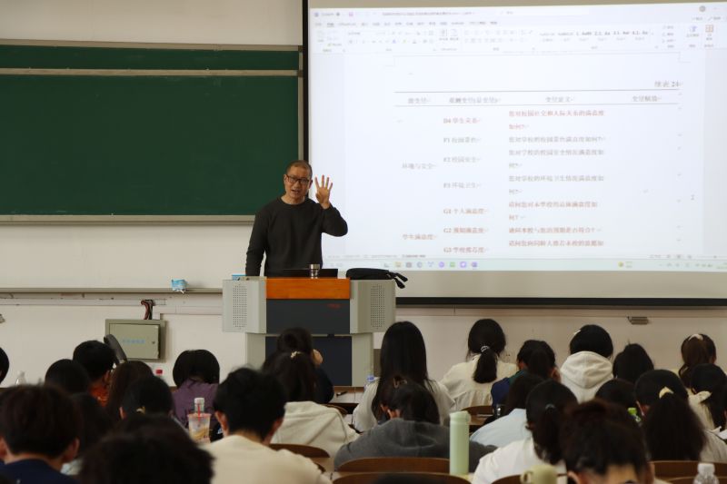 王志祥阐述了结构方程模型(SEM)的概念,突出强调其中的潜变量和显变量。同时向学生介绍了结构方程模型常用的软件,如AMOS,LISREL,Stata等。随后,王志祥以学生的毕业论文“学生对校园生活的满意度及其影响因素”为例,对校园设施、教学质量、社团活动等潜变量进行分析研究。王老师通过亲自实践,建立模型,进行计算,为学生演示了软件使用方法,突出强调了结构方程模型在研究中的重要作用,让学生对概念有了更加深刻的理解。