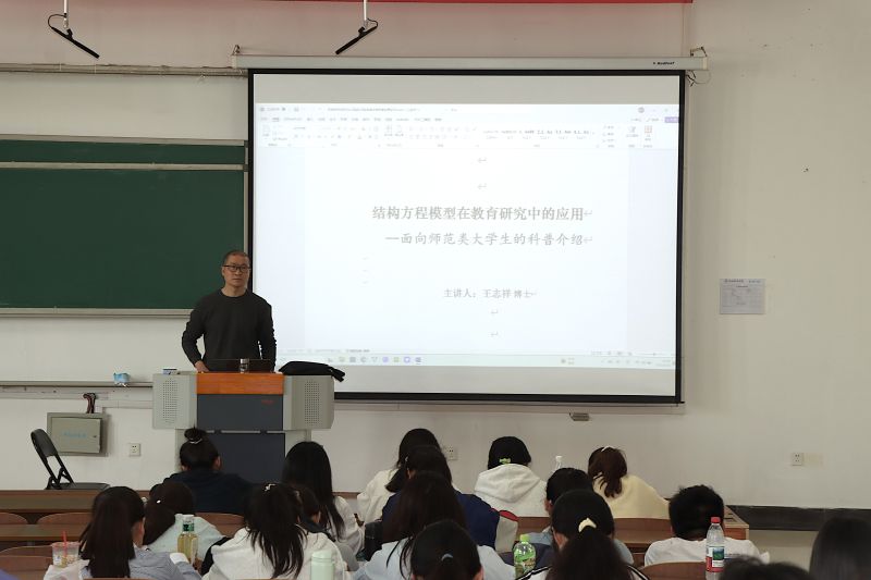 为帮助师范生架起教育理论与科学实证的桥梁,助力“研究型教师”成长,3月26日下午,新葡萄8883官网AMG开展以“结构方程模型在教育研究中的应用——面向师范类大学生的科普介绍”为主题的文化素质讲座。本次讲座由王志祥老师主讲。