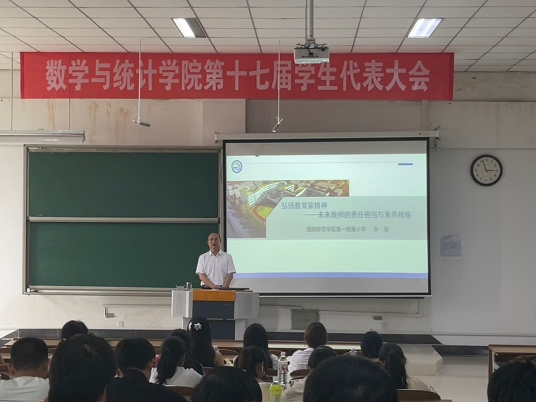 为推进“新师范”建设,推动“名师”培养“明师”行动,增强师范生实践教学能力,提高师范生培养质量,开展师范类专业“明师学堂”工作,6月24日下午特邀请淮阴师范学院第一附属小学副校长孙政在理工西阶201做“弘扬教育家精神——未来教师的责任担当与素养修炼”主题讲座。