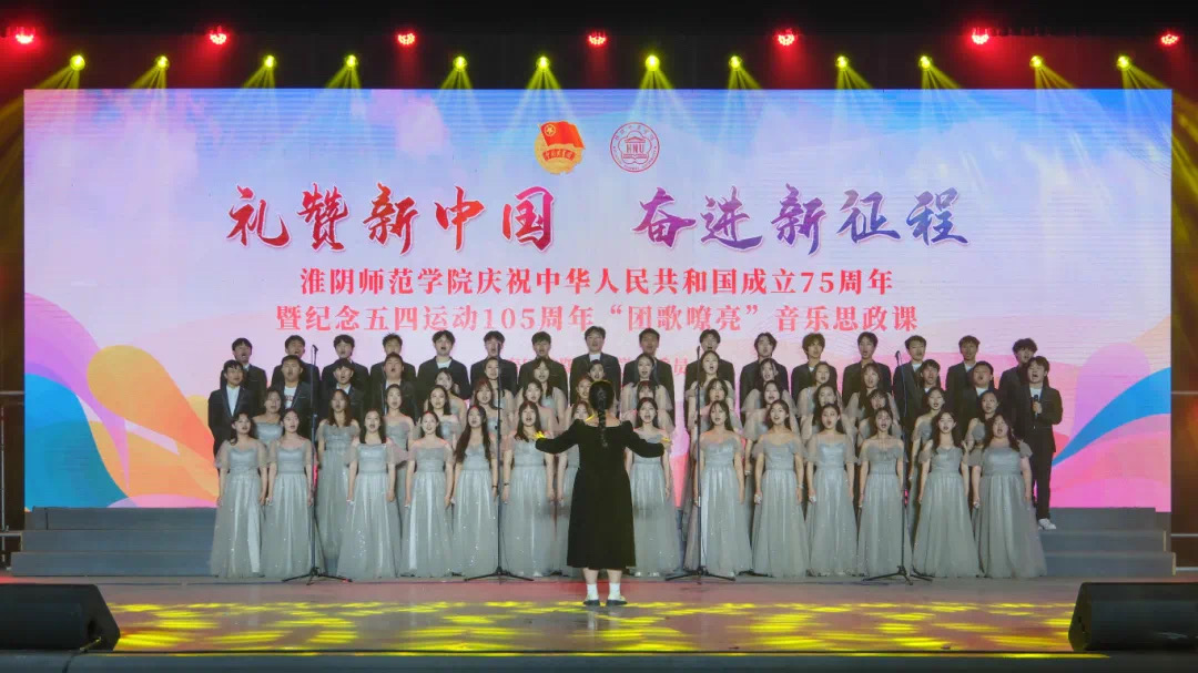 为庆祝新中国成立75周年,传承五四精神,428日晚,淮阴师范学院礼赞新中国,奋进新征程庆祝中华人民共和国成立75周年暨纪念五四运动105周年团歌嘹亮音乐思政课在长江路校区音乐厅隆重举行。