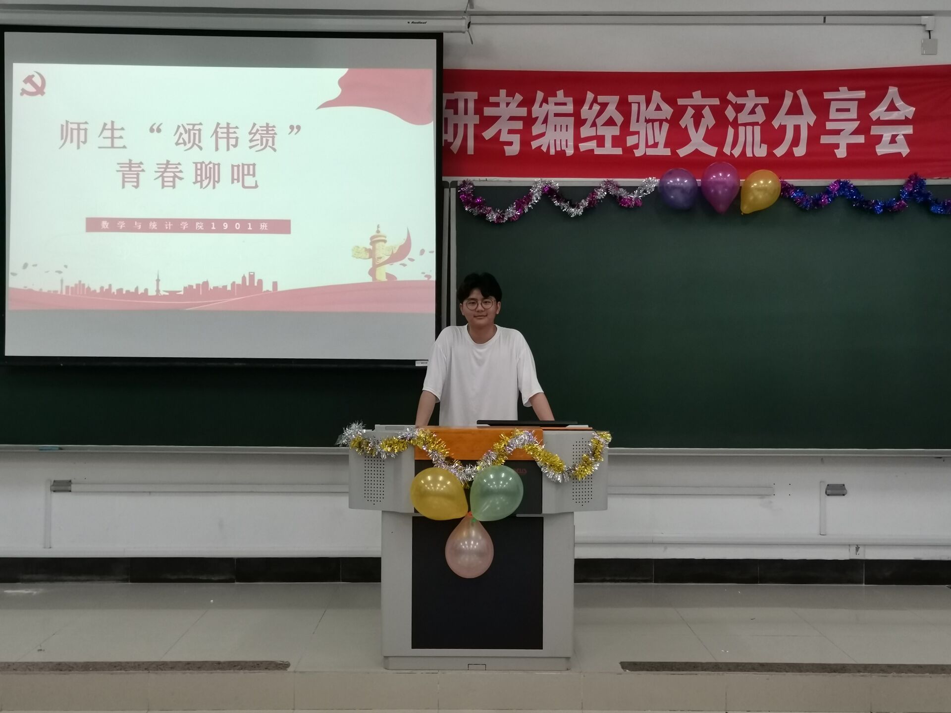 翔宇网5月10日电(记者 陈瑶)为加强1901班同学们对当前考研考编形势的认识,了解党领导下各方面的变化,2021年5月9日数统1901班于理南112,从两个方面——考研考编经验交流会、党带领下的改变,开展了师生“颂伟绩”青春聊吧。