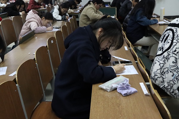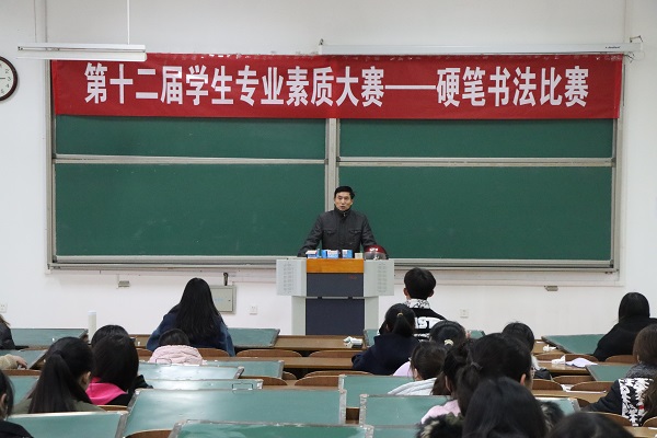 翔宇网11月26日电(记者 陈杭钰 刘萍 车稳)为进一步提高师范生书法技能,弘扬中华民族书法传统文化,丰富校园文化底蕴,11月25日下午,新葡萄8883官网AMG在理工西阶103举行了硬笔书法素质大赛。关工委老师马强应邀主持比赛,并作为评委给选手打分。