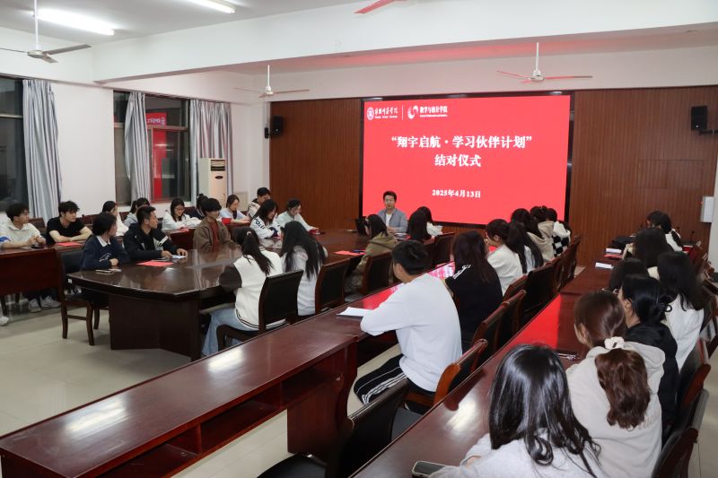 为有效激发优秀学子的朋辈示范效应与正向引领作用,着力构建互学共进的优良学风环境,满足学生的多元化学习需求,增强学生学习动力和信心、提升学习素养,全面助推学生综合素质提升与可持续发展,4月13日晚,新葡萄8883官网AMG于理北315会议室开展“翔宇启航·学习伙伴计划”结对仪式。18组新结对的“学习搭子”及优秀结对代表参加了仪式,活动由辅导员老师谷雷主持。