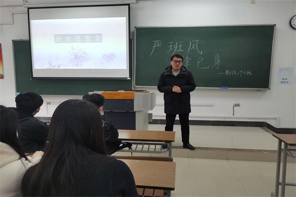 接下来,班主任尹洪辉老师发言,对同学们学习、生活进行指导,尹老师表示距离毕业越来越近,大家更要严格要求自己,每个人都应树立坚定的目标并为之努力奋斗。同时,尹老师借助唐僧扫塔的故事告诉同学们无论是生活还是学习中都应做到“起点低、当下净、回头脏、平常道”不忘初心、脚踏实地、扎扎实实地做好眼前事。最后,尹老师强调宿舍卫生及宿舍氛围也同样重要,每位同学都应自觉主动地打扫好宿舍卫生,并且宿舍安全问题也不容忽视。