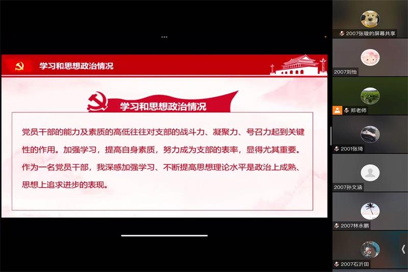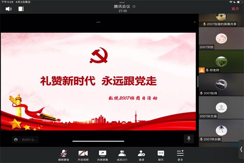 翔宇网4月4日电 记者(刘怡 张璇)为了促进新时代青年树立永远跟党走,积极投身社会主义现代化建设事业的信念,2022年4月3日下午,数统2007班于线上进行了“礼赞新时代,永远跟党走”团日活动,本次会议由刘怡主持。