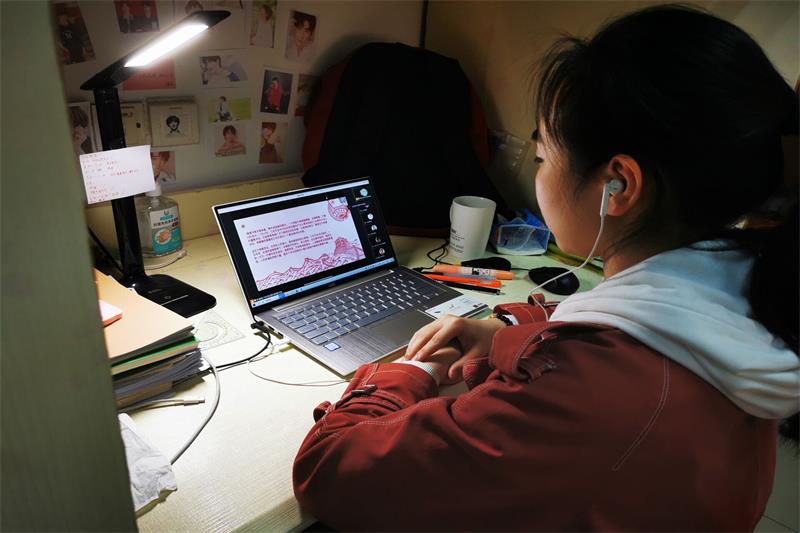 图为同学观看线上活动现场。记者 居佳艺 摄