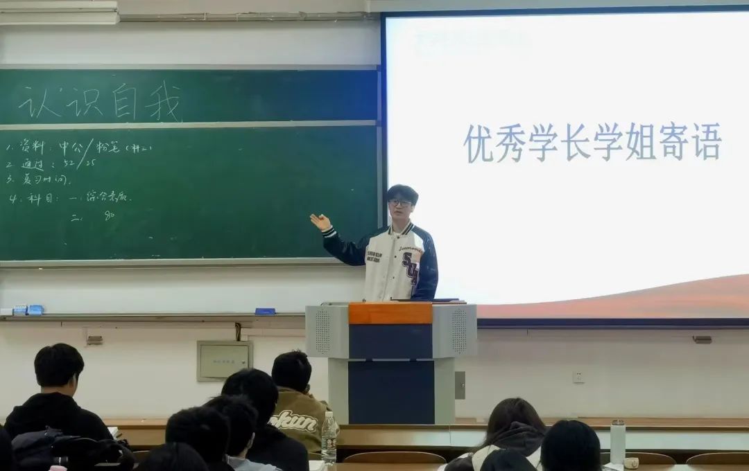 会议最后,我们邀请了来自2004班的学长学姐来与同学们进行交流,为我们进一步指明了大学的职业生涯规划。学长现向我们系统地讲述了如何备战即将到来的教师资格考试。随后,又从自身的经历分析了自己目前学习态度、学习方法上的优点和不足以及对自己大学生活的总结和规划。