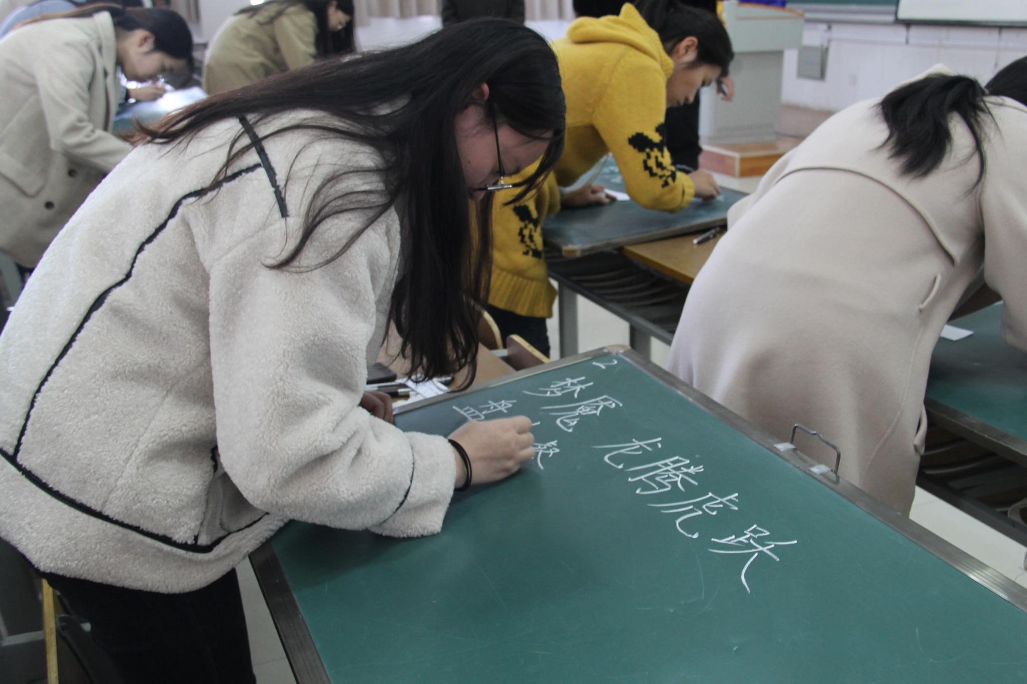 1120日下午,新葡萄8883官网AMG关工委特邀退休教师马强指导学生开展硬笔书法比赛,比赛内容为粉笔字与钢笔字书写。