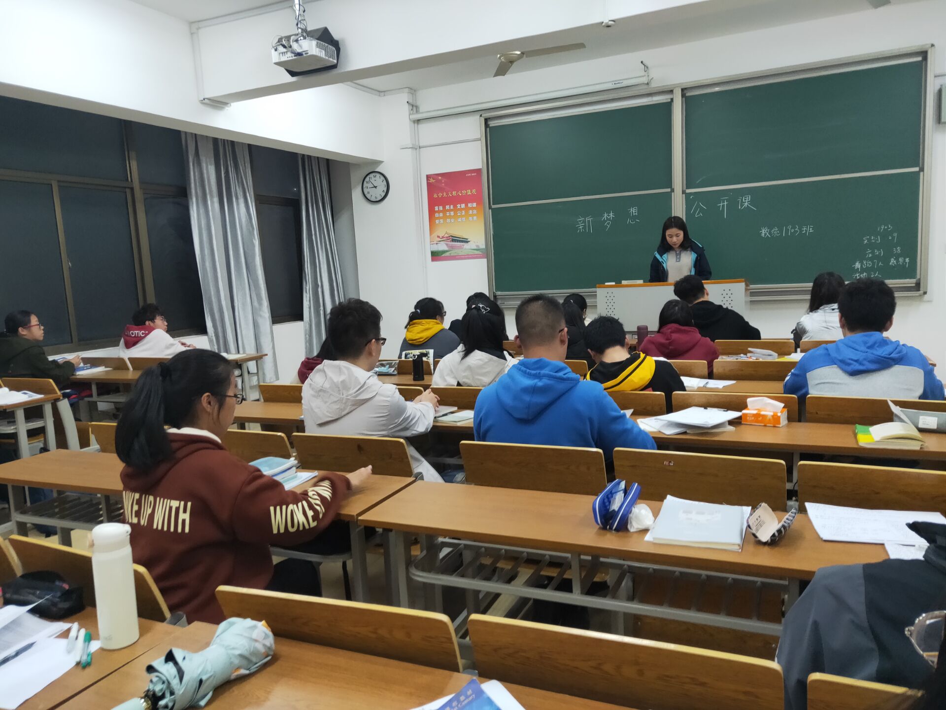 翔宇网11月18日电(记者 徐康为)为了让同学们对自己的未来充满信心,在奋斗的过程中明白日后的方向。1903班于11月17日在崇文楼举行了“逐梦未来”新梦想公开课团日活动,本次活动由班长徐康为主持进行。