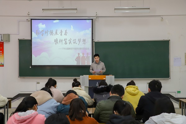 (翔宇网3月22日电 记者 崔亚楠)为进一步推动我校“勤学 修德 明辨 笃行”主题教育月活动的开展,让同学了解学院、班级主题教育月的活动安排,在主题教育月乃至以后的学习生活中,更好的理解并落实习总书记的八字方针,淮阴师范学院数科学院1706班全体同学在3月22日,于理工楼101教室开展“勤学修德展青春 明辨笃实筑梦想”主题班会暨动员大会。