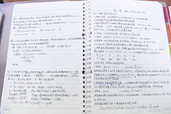 本次活动要求每班上交至少5本专业课笔记,具体包括:数分、高代和概率论等主要课程。经过老师评选,总共有59份优秀的笔记被筛选出来进行展示。伴着浓浓书香气,评选活动开始了。为了保证评选工作的公平性,本次活动采用了老师和同学一起评分的模式。吴以立老师评完之后,学习部人员又根据笔记上的字迹,批注等多方面进行考量,最后做出严格的分数统计。