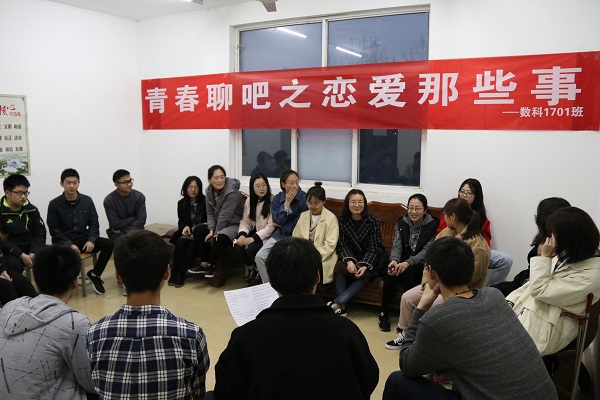 翔宇网4月2日电(记者 华佳俊)有关爱情,无数诗人作家歌颂过它。但是爱情是什么,好的爱情是什么样的,什么才是真正的恋爱相处模式,等等问题也许正在困扰着许多大学生。为了解决这些问题,同时推进主题教育月“明辨”主题活动的进行,数科1701班全体同学于4月2日晚在16号楼502大厅开展“恋爱那些事”青春聊吧活动。
