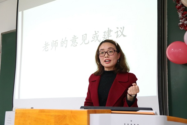 图为蔡永丽老师参加1707班青春聊吧 记者 王婧奕