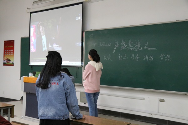 活动第二项,“修德——声临其境”。以喜闻乐见的综艺形式,让班级同学们减缓压力,舒缓紧张情绪。围绕“团结、友爱、勤思、青春、梦想”的主题,借用配音经典影视电影电视剧,在轻松搞笑的氛围中,启发同学们:团结方能凝聚力量、友谊方能地久天长、勤思方能熠熠闪光、青春方能无悔年华、梦想方能成就辉煌!