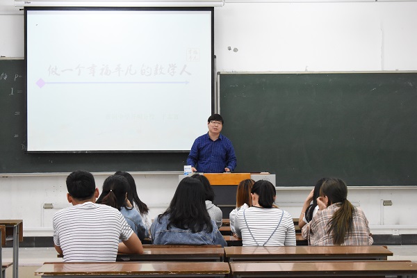聘任仪式过后,四位导师分四个会场从不同角度为17、18级师范专业学子开设讲座。淮安市外国语实验小学孙政老师讲座主题为“新时代 新教师 新作为”,强调新时代数学教师的使命感;淮安经济开发区开明中学李成兄老师从“怎样让你的学生学好数学”的角度,引导学生注重数学教师的教学理念培养;淮安市开明中学于志富老师讲座主题为“做一个幸福平凡的数学人”,引导同学感受作为一名数学教师的职业幸福度;沭阳如东中学洪兵老师讲座主题为“博观约取 厚积薄发----做不一样的当代师范生”,强调作为一名师范生,要有终身学习的理念,与时俱进。讲座内容丰富,涉及面广。