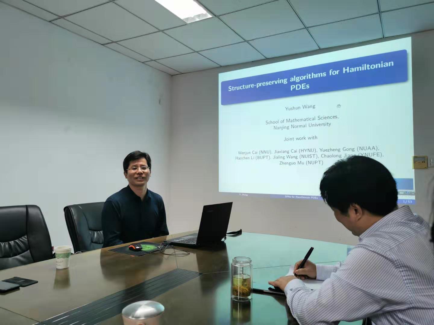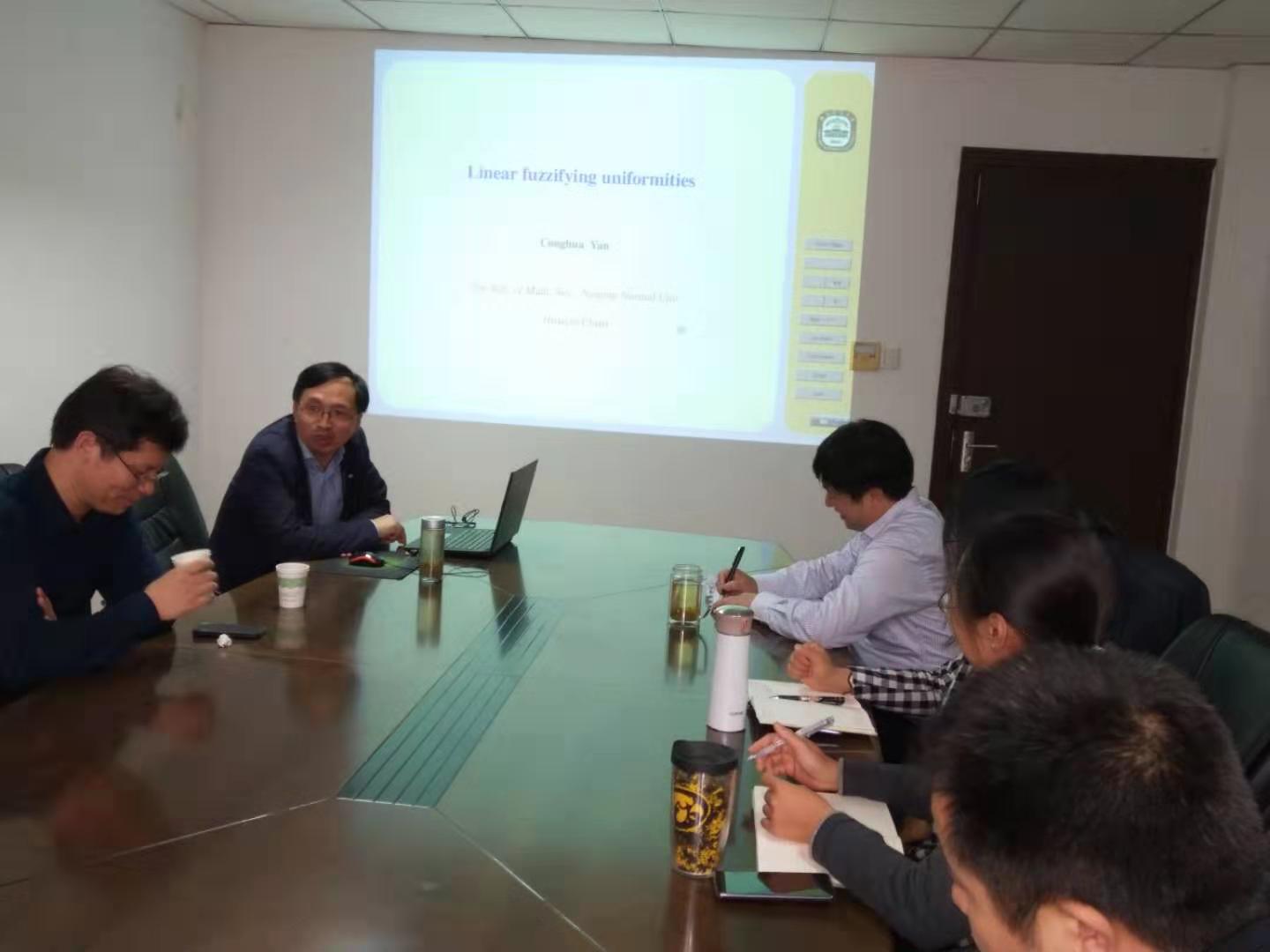 2019年10月12日下午,南京师范大学数学科学学院博士生导师王雨顺教授和严从华教授应邀在理工北楼301室分别作了题为 “偏微分方程保结构算法及其应用”与 “ Linear fuzzifying uniformities”的学术报告。新葡萄8883官网AMG柏传志教授主持了此次报告会。新葡萄8883官网AMG的部分教师聆听了此次报告。