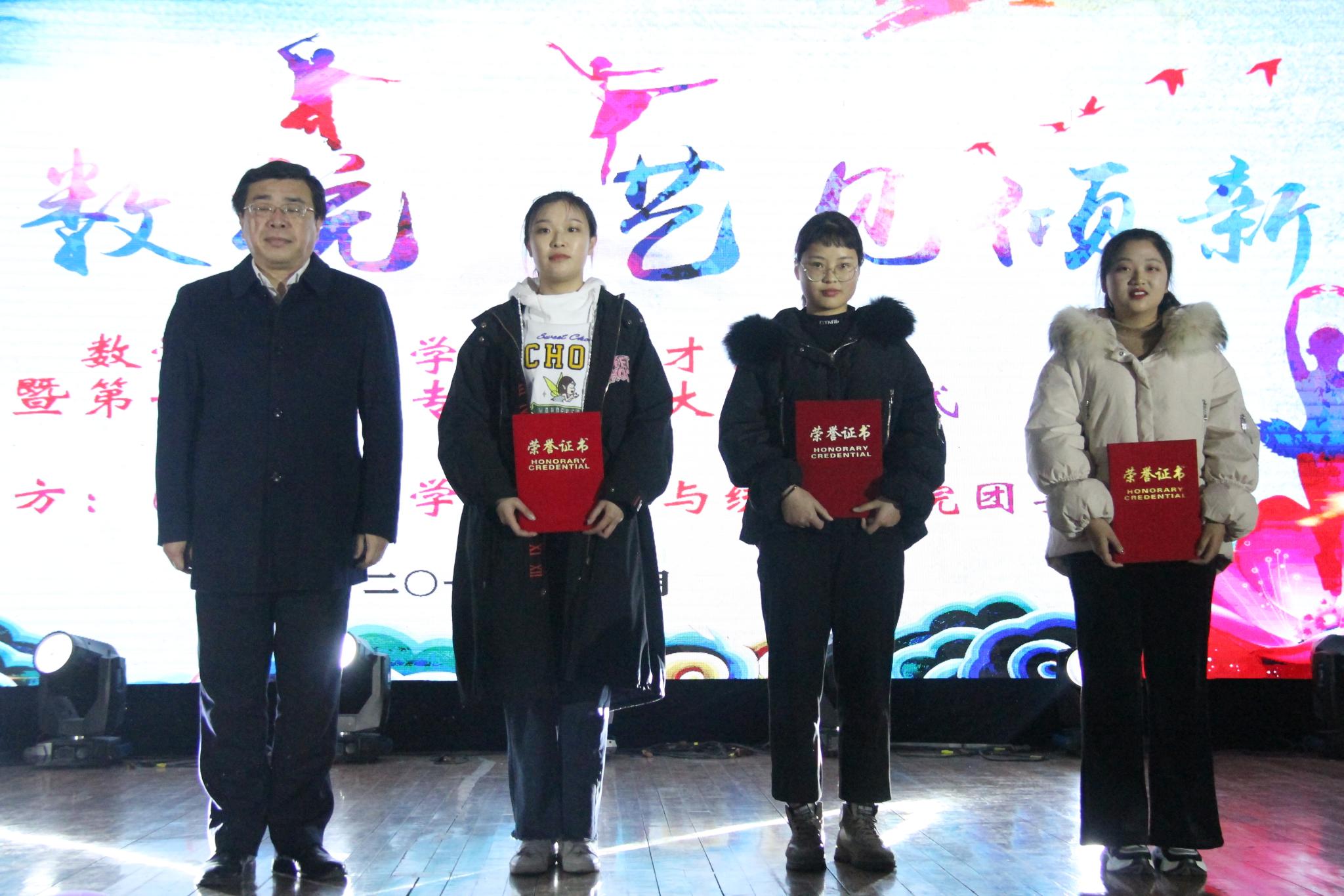活动临近尾声,学院党委书记柏传志致闭幕词,他用“务实、协同、创新、出彩”四个关键词总结了学院一年来的各项工作,并对学院获得的成绩表示肯定。他勉励同学们珍惜荣誉,谦虚谨慎,戒骄戒躁,努力追逐青春梦想。随后,院长郭嵩宣读了《关于表彰省学科竞赛和学院专业素质大赛获奖个人的决定》,在座的各位领导应邀为获奖的同学颁奖,并合影留念。本次学生才艺展示大赛暨第十一届专业素质大赛闭幕式在热烈的掌声中落下帷幕。
