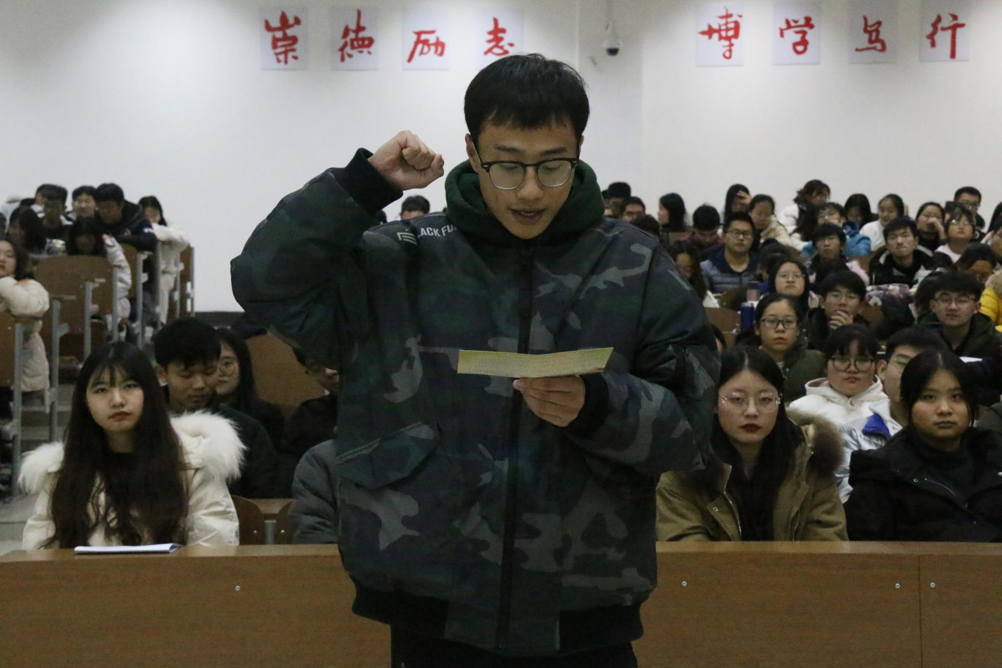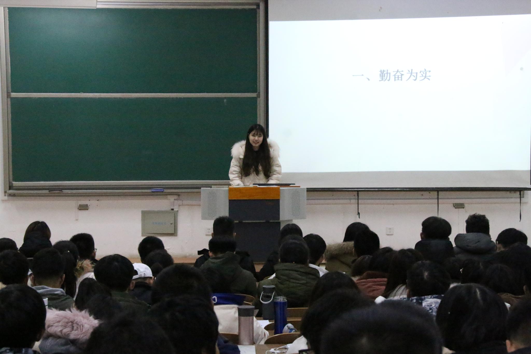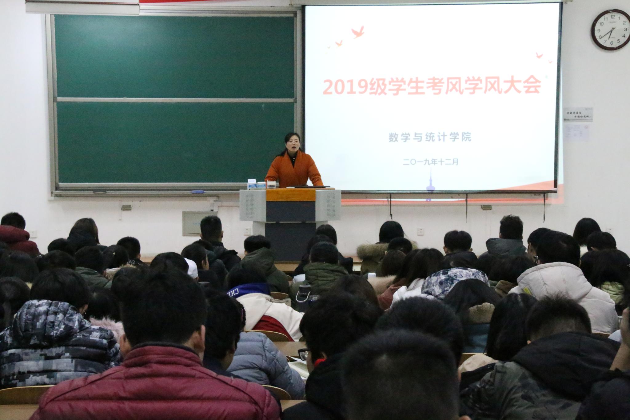 会议伊始,谢海燕简述考试纪律及考试违纪的相关处理办法,强调考风考纪的严肃性和重要性。她督促同学们认真复习,乐观自信地迎接期末考试。为进一步增强学生营造良好考风学风的意识,新葡萄8883官网AMG1904班鞠瑞现场宣读考试违纪的相关处理办法,1906班姚禹代表全院同学宣誓。随后,城环学院学生肖玢羽应邀参加大会,她就 “勤奋为实”“学会规划”“把握机会”三个方面,向2019级学生分享自己的学习经验;王柳以“数学分析”“初等数论”“解析几何”具体举例,提出宝贵的学习建议;黄兰则分享了自己的期末复习方法。
