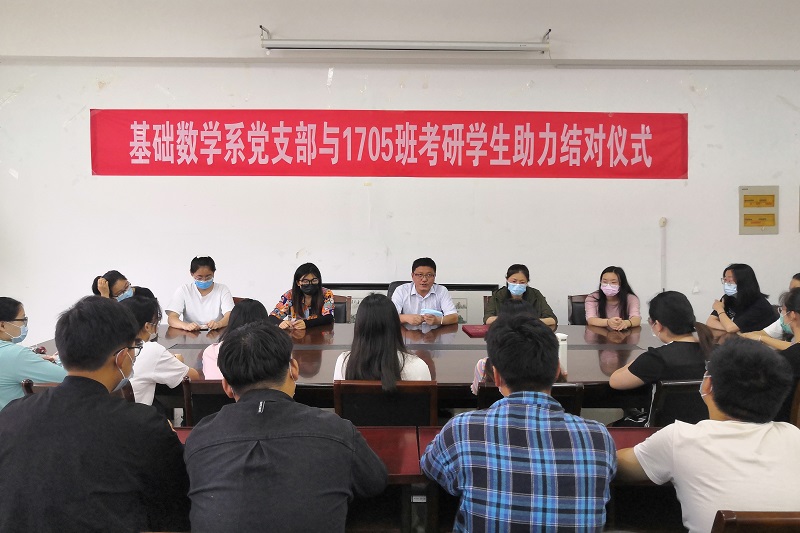 淮师新闻网6月30日电(记者 杨轲旭 王蕴悦)6月29日下午,为让学生进一步了解考研动态,明确考研目标,拥有更美好的未来,全国样板党支部——新葡萄8883官网AMG基础数学系党支部与1705班在理北315举行了考研学生助力结对仪式。仪式由1705班班主任刘咪老师主持,基础数学系党支部书记张新建、支部党员代表郭嵩、房剑平应邀参加。
