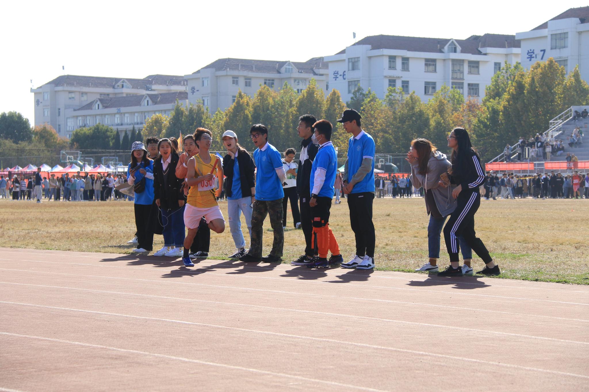 翔宇网10月24日电(记者 江颖 张改 徐运)田径赛场上留存下属于数统运动员的诸多光荣瞬间。10月23日下午,在男子4×400米比赛中,枪声一响,第一棒运动员如离弦之箭冲出起点,虽与对手略显胶着,但奠定了良好的基础。随后,后一棒接过接力棒奋起直追,将对手远远地甩在身后。借着秋天的凉风,迎着观众的喝彩,数统健儿们奔着坚定的步伐奋力冲向胜利的终点。