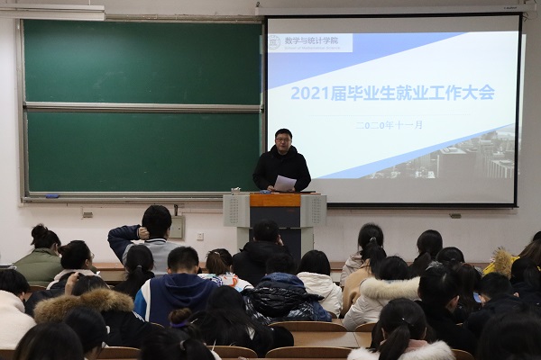 最后,谢海燕老师从提高认识、转变观念;找准定位、确定目标;提高警惕、确保安全三个方面向毕业生提出要求,再度为同学们敲响“毕业在即,拼搏奋斗刻不容缓”的警钟,提醒同学们客观定位自己,选择能长远发展的领域作为目标,对考研与就业做两手准备。最后,郭嵩老师总结会议内容,就2020届毕业生的就业率、考研率等客观数据进行了横纵向分析与对比,据此强调就业形势的严峻现状,鼓励毕业生抓住就业机会,积极就业。
