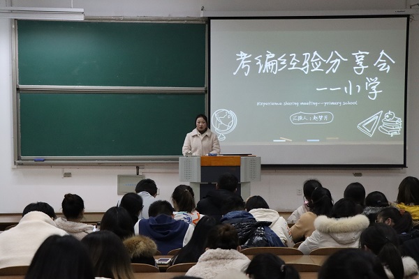 会议伊始,2015届优秀毕业生王兢玲分享自己的求职经验。他结合亲身经历,就面试、试讲、笔试的准备方面细致地为大家指出求职中可能会遇到的困难,并重点介绍了面试时的着装问题和与面试官的交流方式。