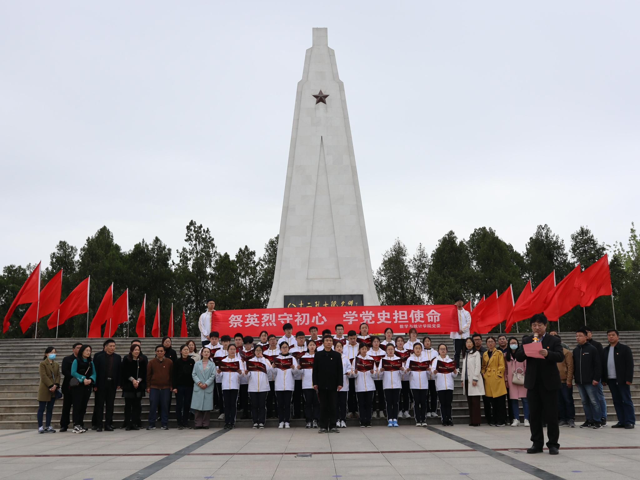 在刘老庄八十二烈士纪念碑前,全体师生党员整齐排开,向纪念碑敬献花篮,表达无限哀思。学院党委书记柏传志、教师党员代表张海辉与学生党员代表许胡莹先后发言,表明要坚定革命理想信念,不忘初心、牢记使命,沿着革命先烈红色足迹,传承红色基因,奋进新时代。随后,在退休党员教师代表马强老师带领下,学生们朗诵马老师创作的诗歌《忠烈英魂祭》,用最朴实的语言、最深情的朗读,表达对先烈的崇敬以及对党的热爱。“我志愿加入中国共产党,拥护党的纲领……”全体党员师生面对鲜红的党旗,庄严地高举右拳,重温入党誓词,表达为共产主义奋斗终身的坚定决心。
