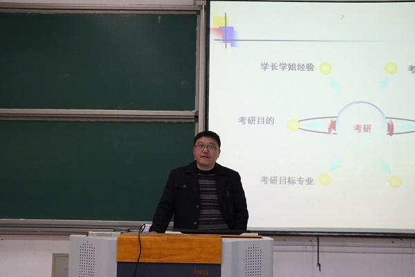 会议伊始,院长郭嵩就新葡萄8883官网AMG近几年考研成就进行分析,为学院有考研意向的同学拓宽考研知识面。他以幻灯片的形式向大家直观展示考研相关的各项统计数据,就如何选择考研学校和专业、如何进行考研准备提出具体的指导意见。