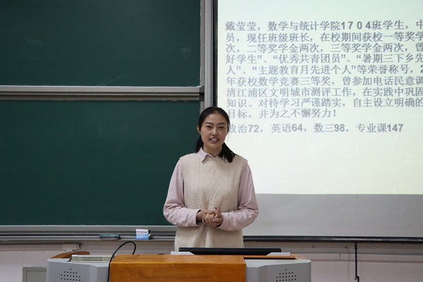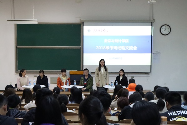 随后,2017级学生代表分别针对不同考研科目,从考研时间线、复习资料和记忆方法等方面进行分享。期间,戴莹莹主讲政治学科,为同学们推荐考研公众号与资料,并建议借助思维导图进行记忆;吴昕磊就统计学专硕方向的数学三进行分析,提醒大家要有针对性复习。