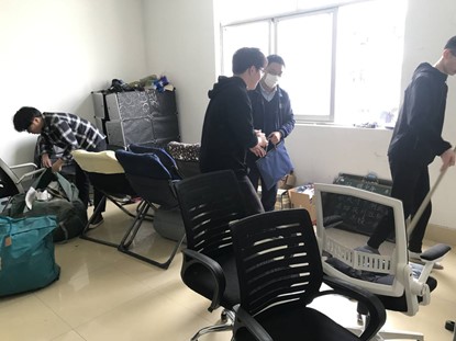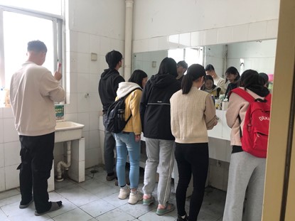 活动伊始,整改小组率先进入男寝宿舍参观。在老师的监督带领下,整改小组迅速就位各自负责的宿舍,就桌面物品摆放、床铺整理、地面清洁等进行细致指导。吴以立老师就12号楼302大厅重点指挥打扫,特别是对游戏椅的使用和摆放作出了明确规定。同时,组员们帮助打扫盥洗室,旨在将302大厅打造成样板间,起榜样示范作用。经过一系列细致化整改,各宿舍均完成整改任务并通过打卡验收。