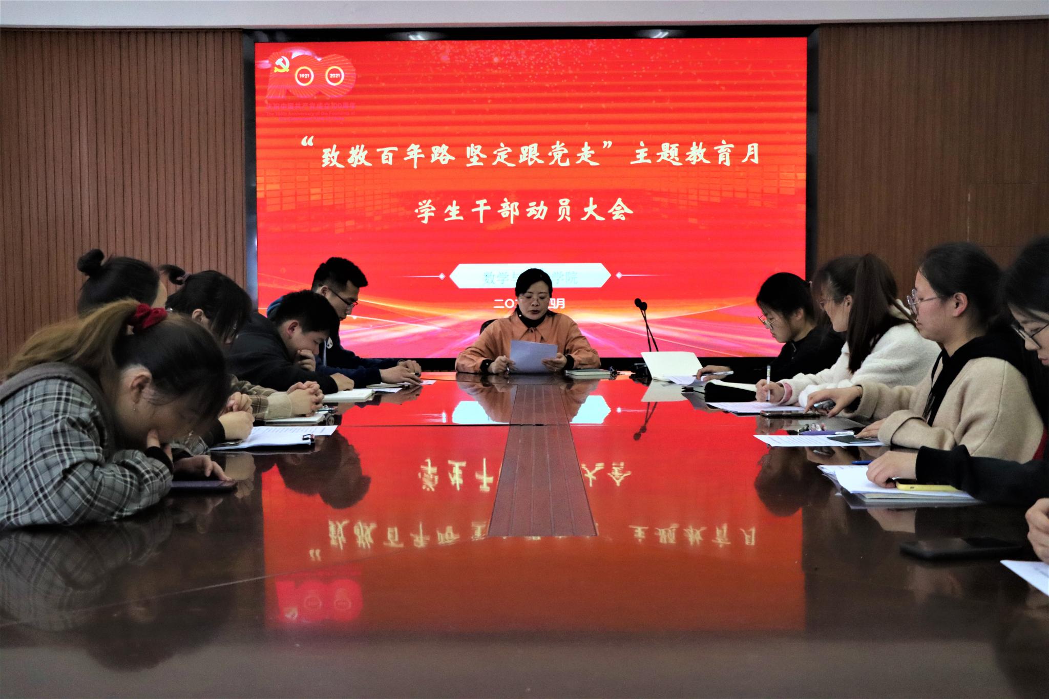 翔宇网4月9日电(记者 吕玮然 徐运)4月8日中午,新葡萄8883官网AMG在理北315召开“致敬百年路 坚定跟党走”主题教育月学生干部动员大会。院党委副书记谢海燕、辅导员刘咪出席会议。