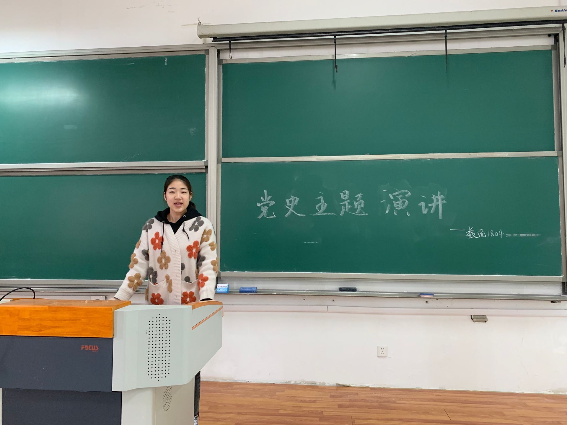 活动伊始,由黄婧怡和徐佳祺召集班级全体同学,通过观看关于党的电影《建党伟业》,进一步了解党的发展;同学们再观看电影的过程总重温党的光辉历史,缅怀革命先烈的丰功伟绩,接受革命传统教育和爱国主义教育。活动的最后,几位同学上台进行党史主题演讲,其中,梁艳婷表示我们不仅要学习党史,还要宣传党史知识,要从历史长河中汲取精神动力,从红色基因里延续精神血脉,凝心聚力、奋发进取、担当作为,为社会主义法治建设贡献自己的一份力量。
