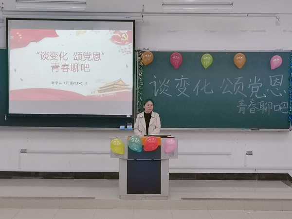 翔宇网5月10日电(记者 陈瑶)为加强1901班同学们对当前考研考编形势的认识,了解党领导下各方面的变化,5月9日数统1901班于理南112,从两个方面——考研考编经验交流会、“谈变化 颂党恩”,开展了师生“颂伟绩”主题青春聊吧。