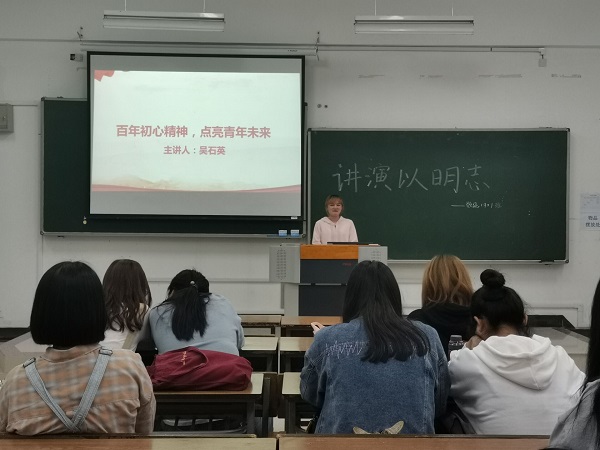 第二位参赛选手是吴石英同学,她的演讲主题是“百年初心精神,点亮青年未来”。吴石英同学回忆了中国共产党曲折又不平凡的历史,歌颂赞美了党不怕牺牲,敢于斗争,顽强不屈的崇高精神。
