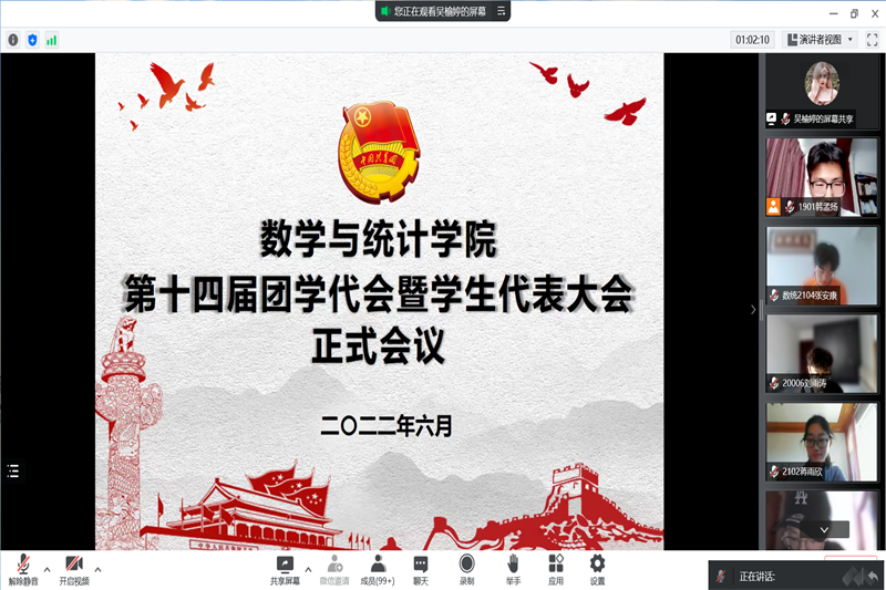 翔宇网6月30日电(记者 刘小琰)为深切贯彻团学精神,确定第十四届团学委员会,6月29日下午2:00,新葡萄8883官网AMG隆重召开了第十四届团学代表暨学生代表大会。本次大会于线上召开,由吴榆婷同学主持,大会主席团成员出席本次大会。
