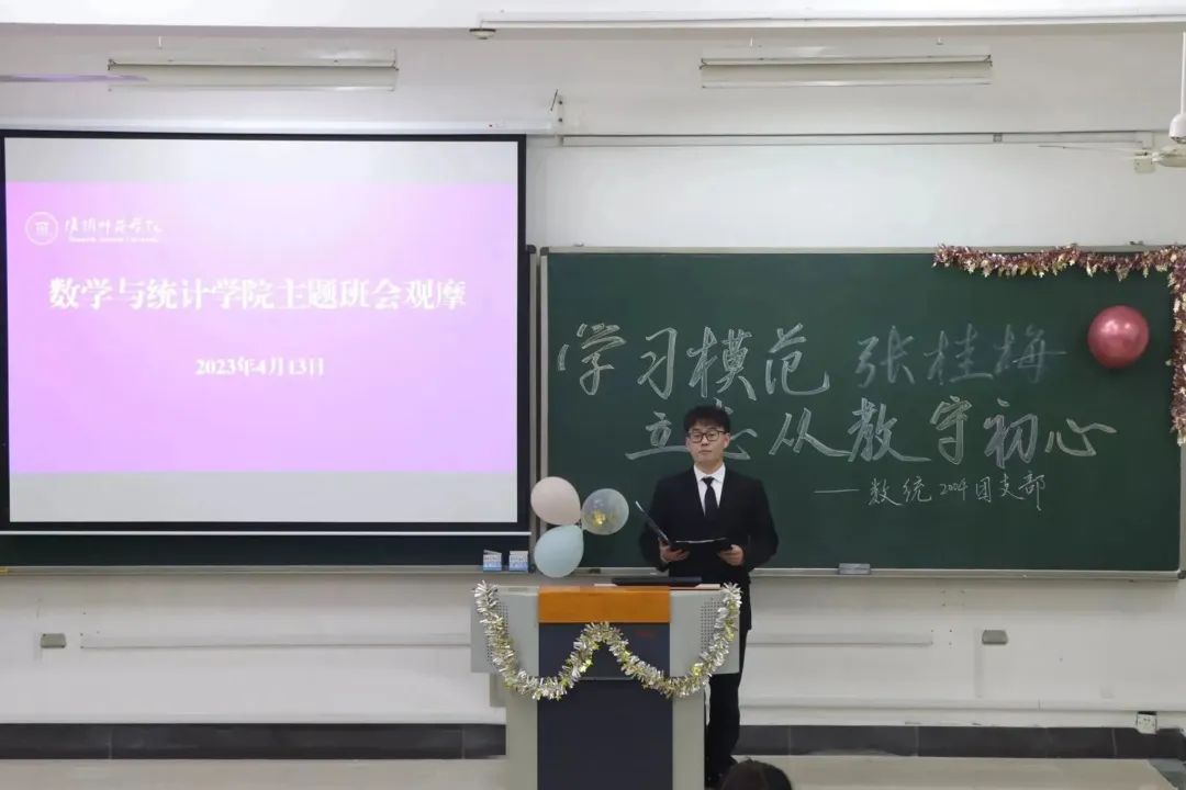 2004班开展了《学习模范张桂梅,立志从教守初心》主题班会观摩。活动起初,主持人以“赤诚之心,奉献之心,仁爱之心”“坚定信仰者、忠实实践者”等关键词导入团日活动的主题,“二十开启教育路,育人育己传师德;痛失丈夫不失志,丽江华坪有讲台;病魔缠身令人恶,切瘤重返报大恩;含辛追资苦建校,女子中学旗飘扬;上山下乡劝读书,党旗面前终报党。”全体同学通过全国2020年度人物颁奖视频重温了张桂梅老师一生奉献教育事业的感人故事。李雨桐、刘沁怡同学以情景剧方式展开了一场跨越时空与空间的对话,彰显育人初心的价值所在。在抽签选答环节,同学们分别对“在生活学习中如何以张桂梅老师为榜样”“分享一下自己身边有关师德的事例”“最赞美、最崇拜张桂梅老师哪个品质”三个问题分享了自己的感悟和见解,“敬业”“奉献”“精神支持”等话语间充满同学们对教育事业的崇高敬意,最后,同学们通过现场书信的方式给“未来的自己”寄出了一封信。苗军为同学们作了“争做新时代‘四有好老师’”的主题分享,解读了“四有好老师”的时代内涵,鼓励同学们将来在教师岗位上以生命影响生命,做传道、授业、解惑的忠实实践者和示范者,与学生共同成就。