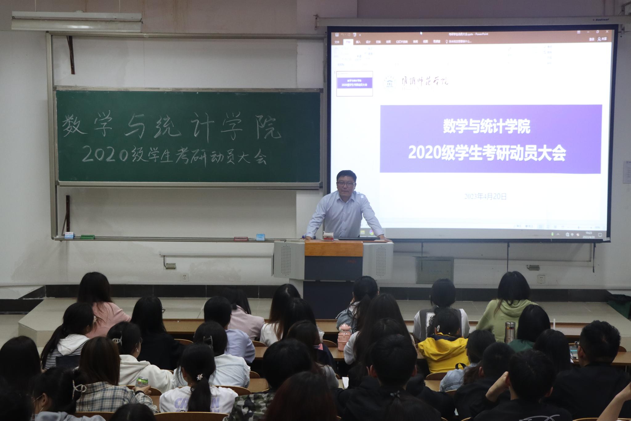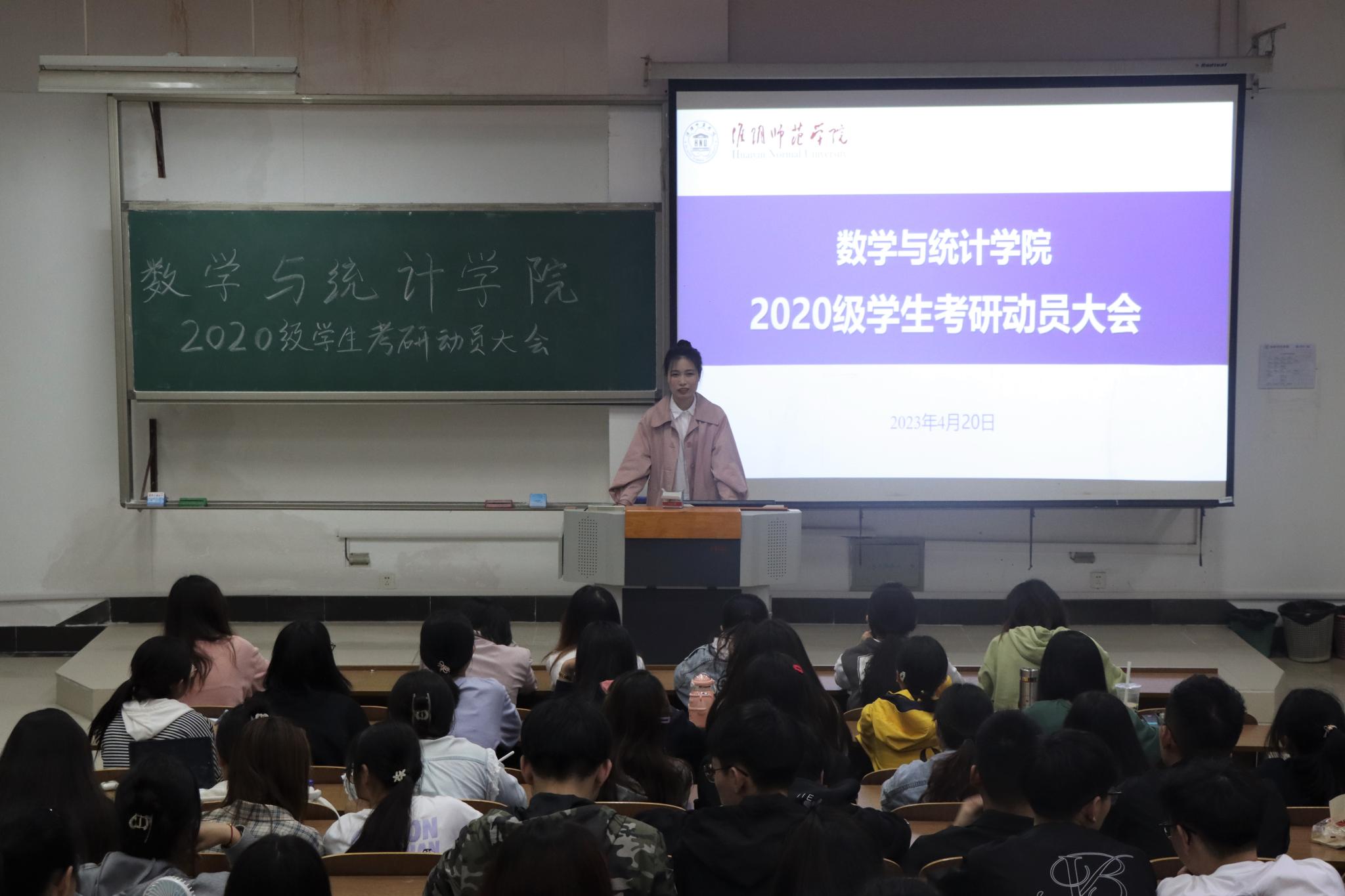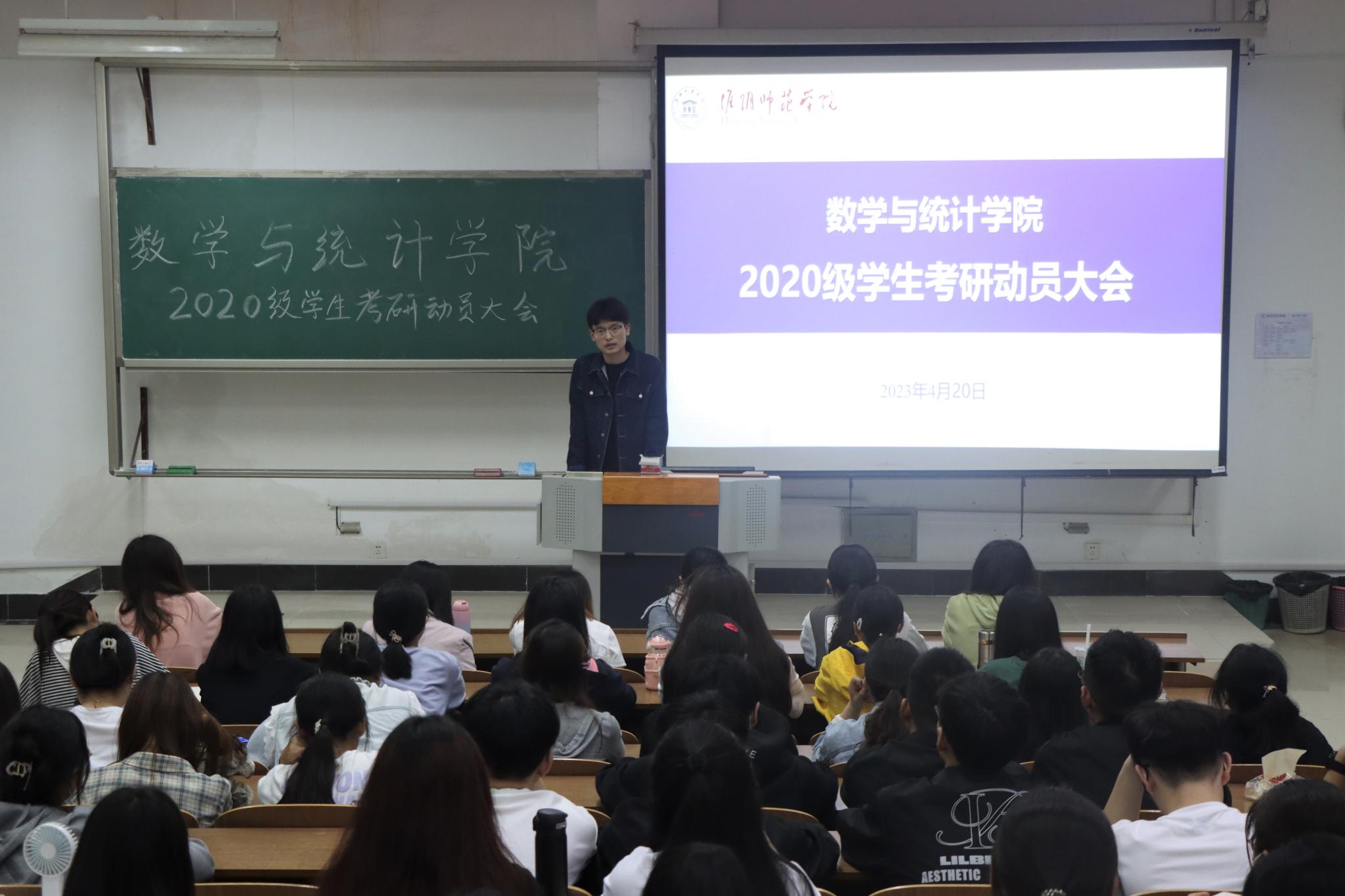 动员会上还邀请了统计学专业和数学与应用数学专业两位考研上岸的同学分享考研经验。他们分别从考研时期的切身经历、院校选择以及考研流程进行讲解,鼓励同学在准备考研阶段,要根据自身的特点制定复习计划,要注意劳逸结合,及时调整心理状态。