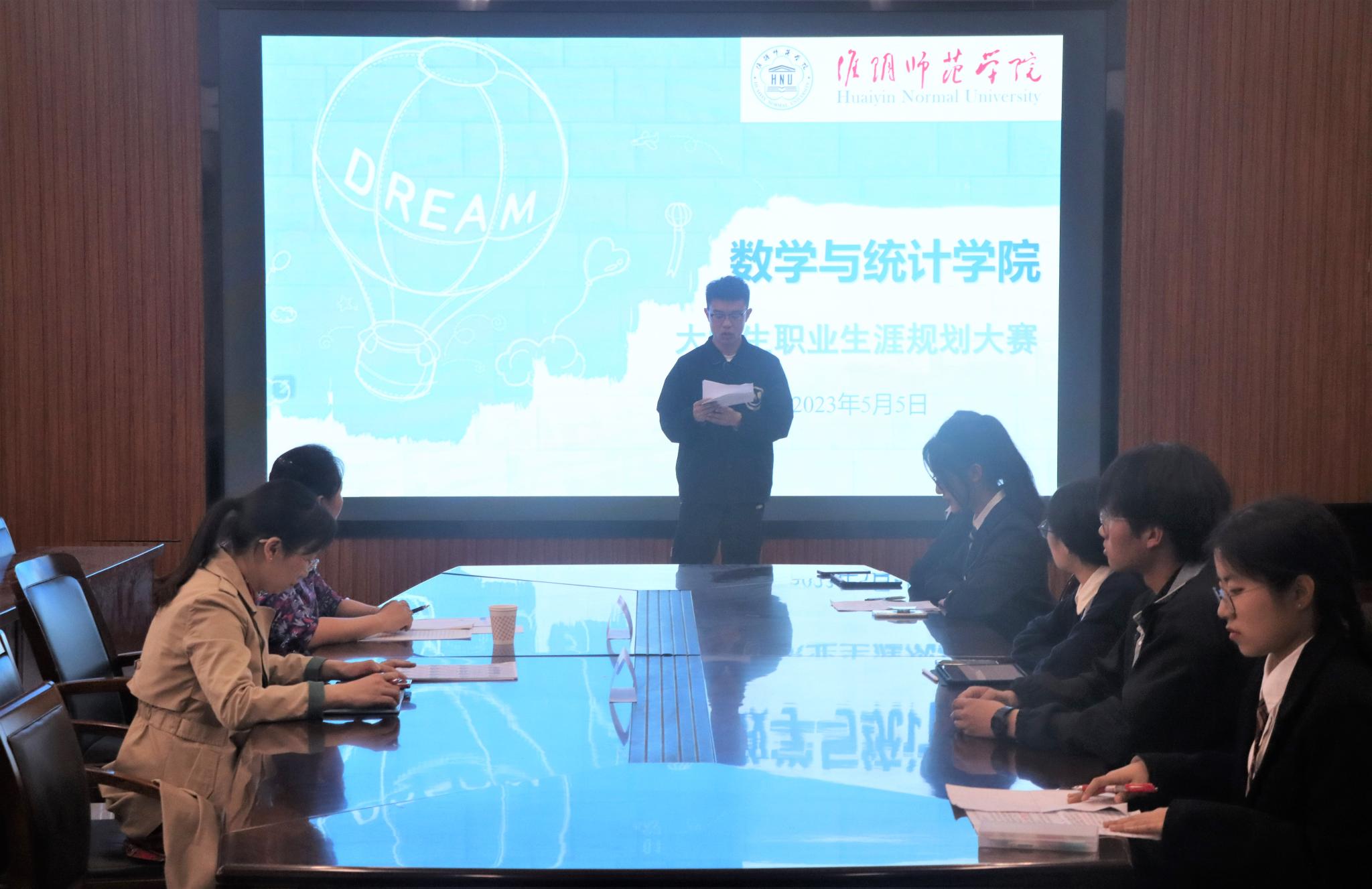 翔宇网5月7日电(记者 黄栩静)为更好地落实立德树人根本任务,帮助学生正确了解自我、认识自我,厘清未来前进方向,引导学生进一步增强就业意识,激发职业兴趣,提高求职能力。新葡萄8883官网AMG于416日至55日举办了大学生职业生涯规划大赛。大赛共计收到作品近30份,经过筛选,有5名选手入围决赛。决赛由招生就业处办公室主任李丹老师、学生工作办公室主任王白丽老师担任评委,就创业部部长戴书坤主持。