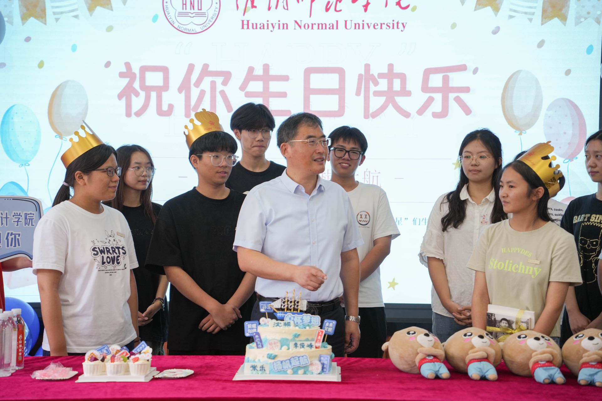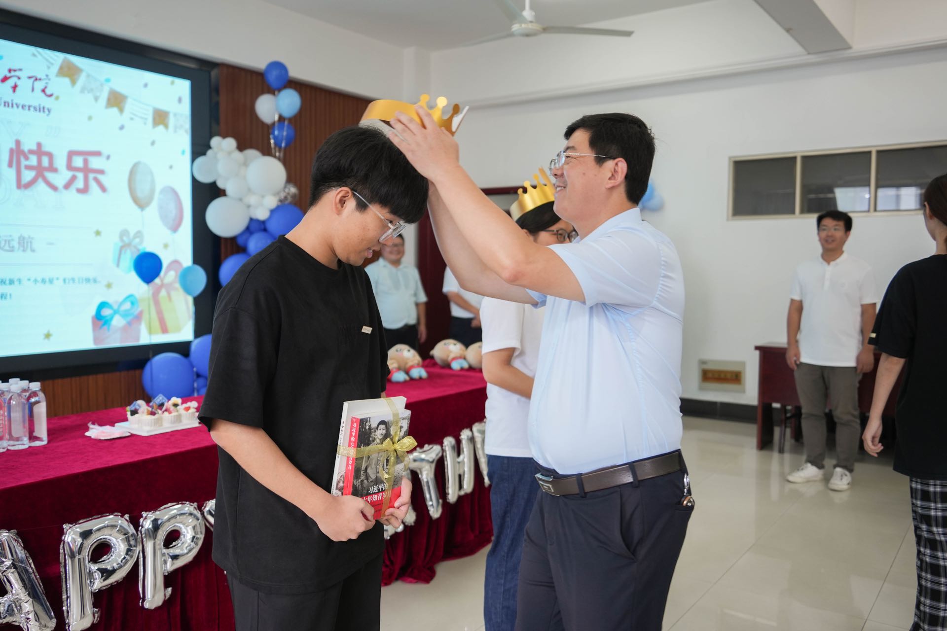 副校长闫超栋为三位“寿星”赠送书籍《习近平与大学生朋友们》《黄金时代》作为生日礼物,希望同学们牢记习近平总书记的青春寄语,传承周恩来总理的崇高风范,珍惜在校时光,努力学好专业知识,在淮阴师范学院这个温暖的大家庭中学有所成,收获幸福人生。在温馨欢快的氛围中,新生班主任、辅导员与同学们进行了深入交流,并送上了自己对新生的美好祝福。