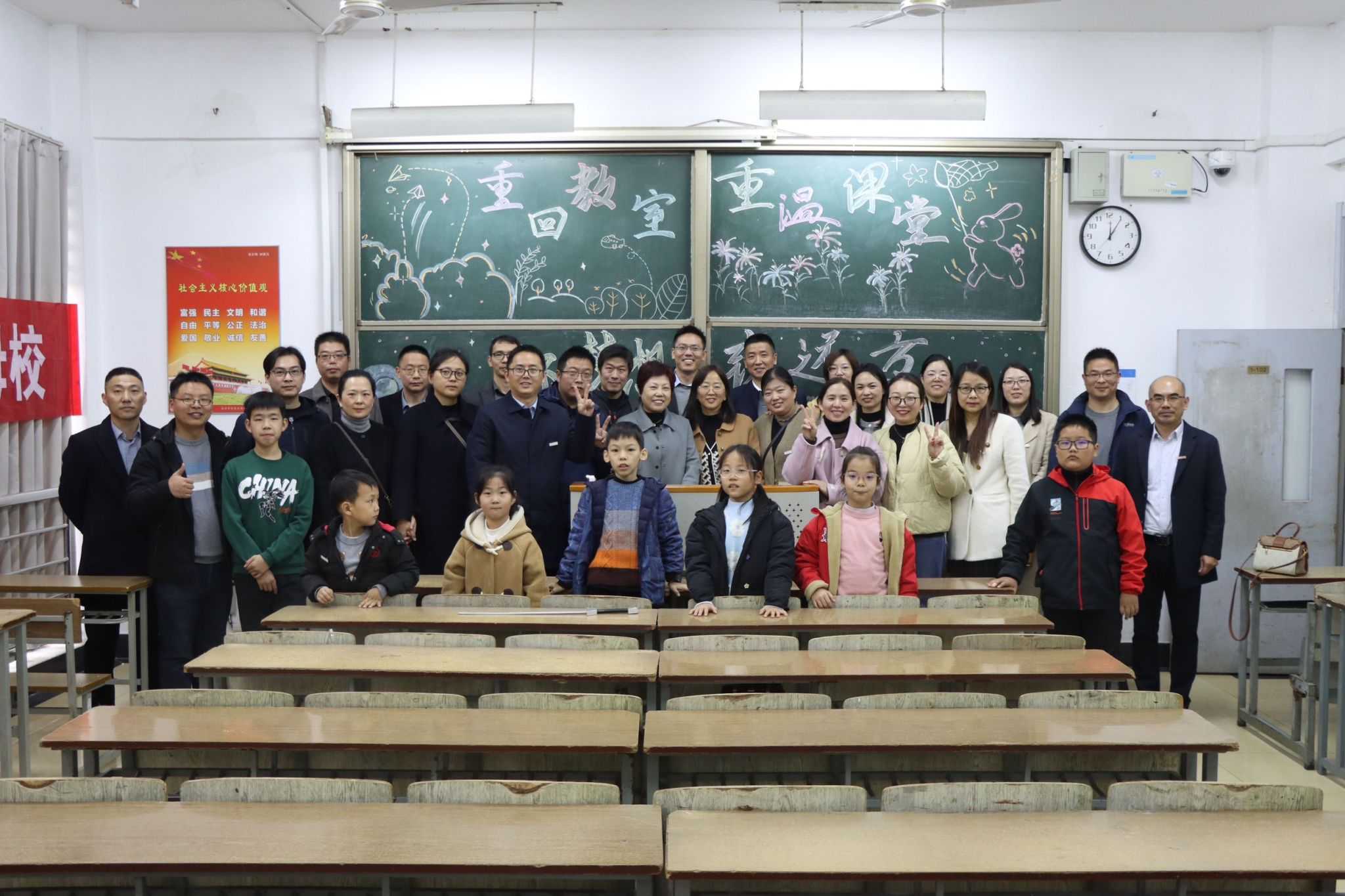 会议结束后,校友与学院领导老师一起合影留念。随后,在崇文楼1-102举行重回教室,重温课堂活动,现场校友们分享返校相聚的感悟、对过去精彩时光的感慨和对未来的美好希冀。大家亲切交流,回首往昔,笑谈往事,现场气氛热烈而温馨。