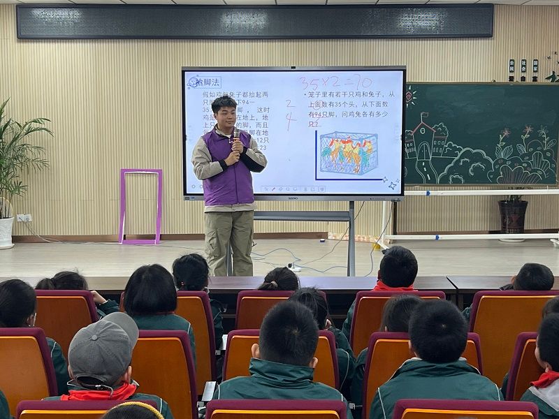 为推进大中小学思想政治教育一体化建设,充分发挥思政课关键课程作用,弘扬传承周恩来精神,明确青年学生责任与担当,12月7日下午,新葡萄8883官网AMG阳光雨露青年志愿者协会志愿者走进淮安市文津小学,开展“萤烛微光 数趣课堂”数学微课堂宣讲活动。