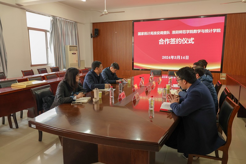 3月14日,国家统计局淮安调查队党组书记、队长苏正芳,副队长王浦一行赴淮阴师范学院沟通交流,积极推动“队校战略合作”项目共建,并举行长期合作协议签约仪式,淮安调查队主要领导和相关负责同志及淮阴师范学院新葡萄8883官网AMG院领导参加签字仪式。