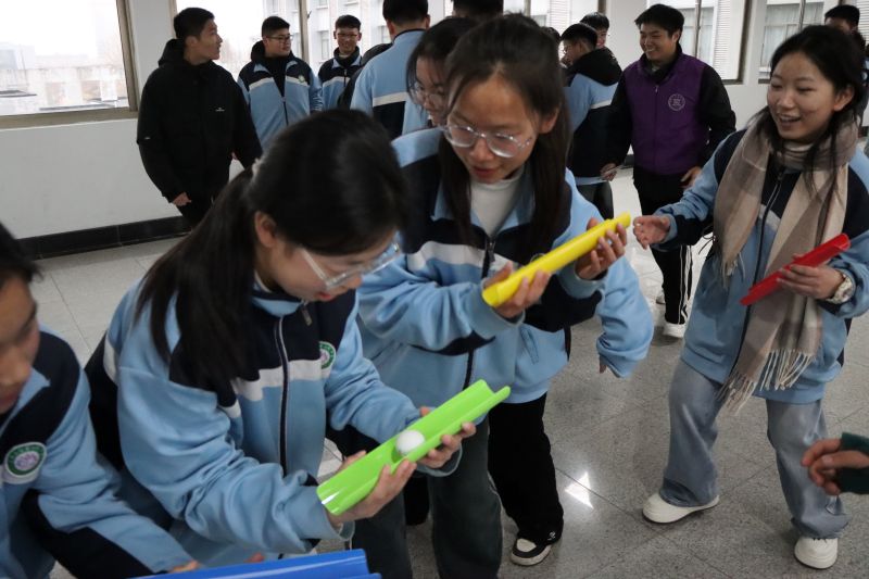 而在理工北楼连廊,学生们分组进行以“数学之力解密红色基因,五育实践厚植恩来情怀”为主题的体育活动,将数学与体育巧妙结合,展现了青少年的昂扬志气。