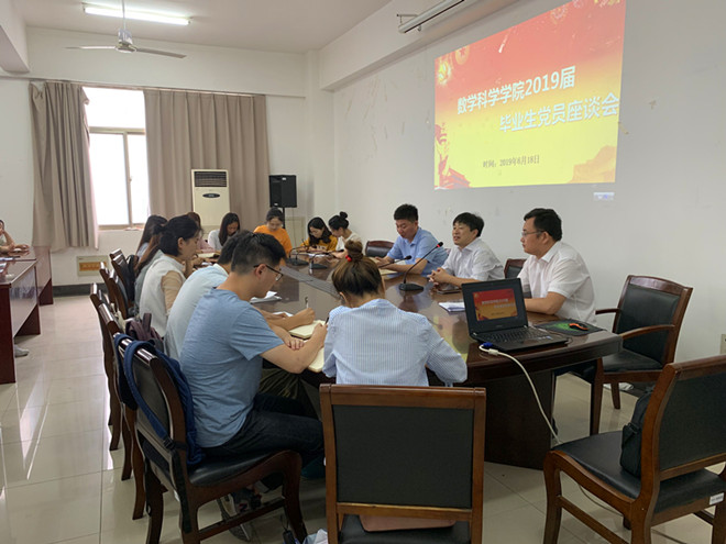 淮师新闻网6月19日电(记者 季慧)数科学院为加强毕业生党员教育,进一步培养其党性意识以及组织观念,并充分发挥党员先锋模范作用,6月18日,数科学院开展毕业生党员离校教育系列活动。院长柏传志教授,院党委高卫国书记,辅导员李剑老师,2019届毕业生党员和2017级学生党员参加活动。